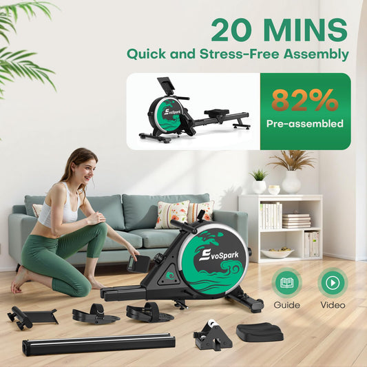 Rowing Machine for Home Gym, EvoSpark Magnetic Rowing Machines 350 LB Weight Capacity - Foldable Rower for Home Use with App Supported, Upgrade to Double Slide Rail