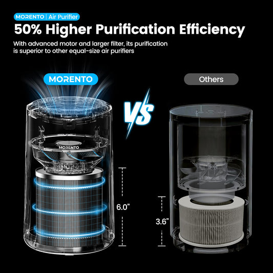 MORENTO Air Purifiers for Home, Air Purifier for Smoke Pet Dander Odors with Fragrance Sponge, Small Air Purifier with Sleep Mode for Bedroom Office, Blue Ambient Light, MR2566, White, 1 Pack+3 Modes