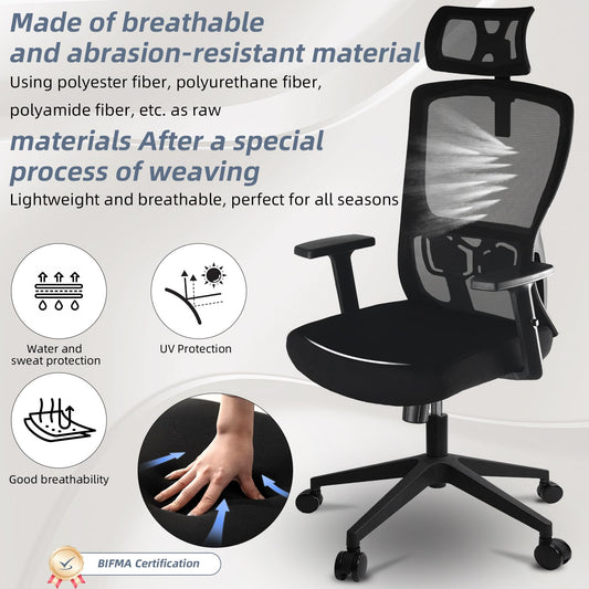 Durrafy Office Chair, Desk Chair with Adjustable Headrest, Lumbar support and Liftable Armrest, High Back Ergonomic Office Chair, Breathable Mesh Backrest for Comfy, Computer Chair for Home/Office
