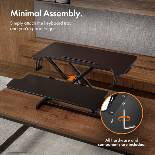 VonHaus Standing Desk Converter, Height Adjustable Computer Workstation with Keyboard Shelf, Dual Monitor Desk Riser w/Tablet Holder - 80x40cm (Black)